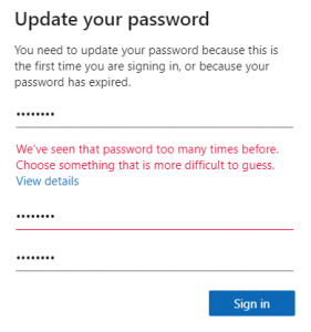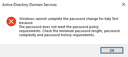 When the policy is set to Enforce and you attempt to set a password which is not permitted by the Azure AD Password Protection you just get the generic "Password does not meet the password policy requirements" error: