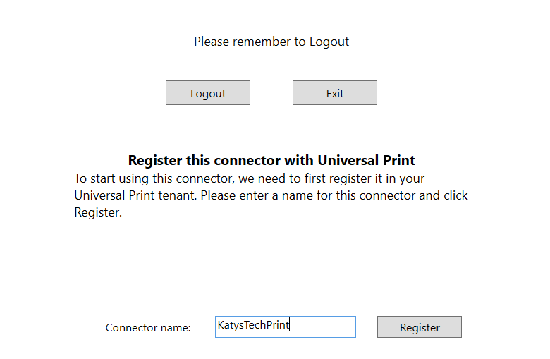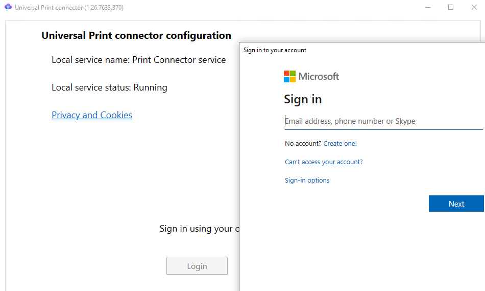 Once you've run through the installer, open Universal Print connector and log in with an account which has Printer Administrator or Global Administrator rights.