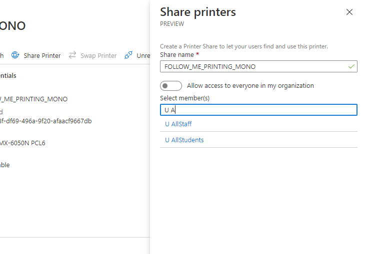 You'll need to licence all users who are going to be printing, along with anyone who is setting it up and configuring it. Universal Print comes with a print job allowance per user, which is currently 5 print jobs per month, however these are pooled - so if you have 1,000 users, that's 5,000 jobs a month. Add-on packs can be purchased for an additional 500 jobs. Each print job counts as a job regardless of how many pages it is, and cancelled/failed jobs do not count. This is a little disappointing as I'm sure, especially in education, most users print more than 5 jobs a month. It has recently been added to the Student Use Benefit version of the A3 licence.