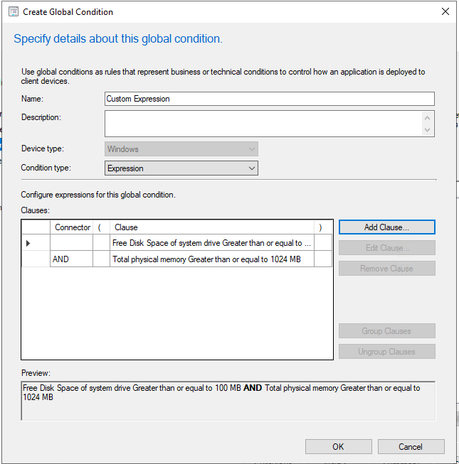 This will allow you to either leave the Condition type at "Setting" and create a condition based on a registry setting, or change it to "Expression" to get the expression builder, where you can add as many Device/User clauses as you like.