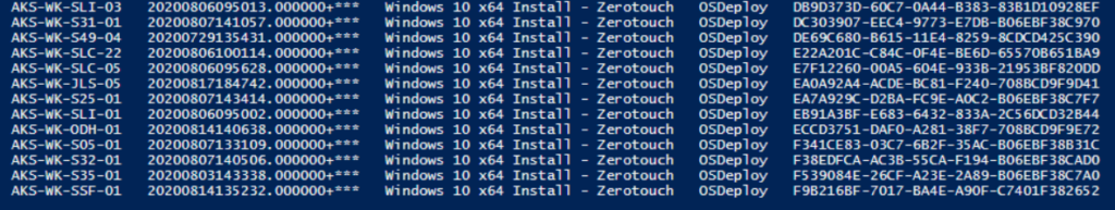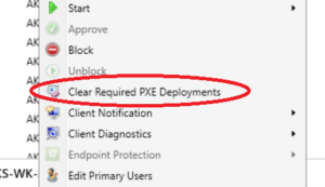 So first of all in PowerShell, I've written up a script which will get the list of devices with active PXE Deployments running (i.e. where if you click them and go "Clear Required PXE Deployments" it'll pop up a box saying when it last ran). This flag often needs clearing if you want to re-deploy the existing device.