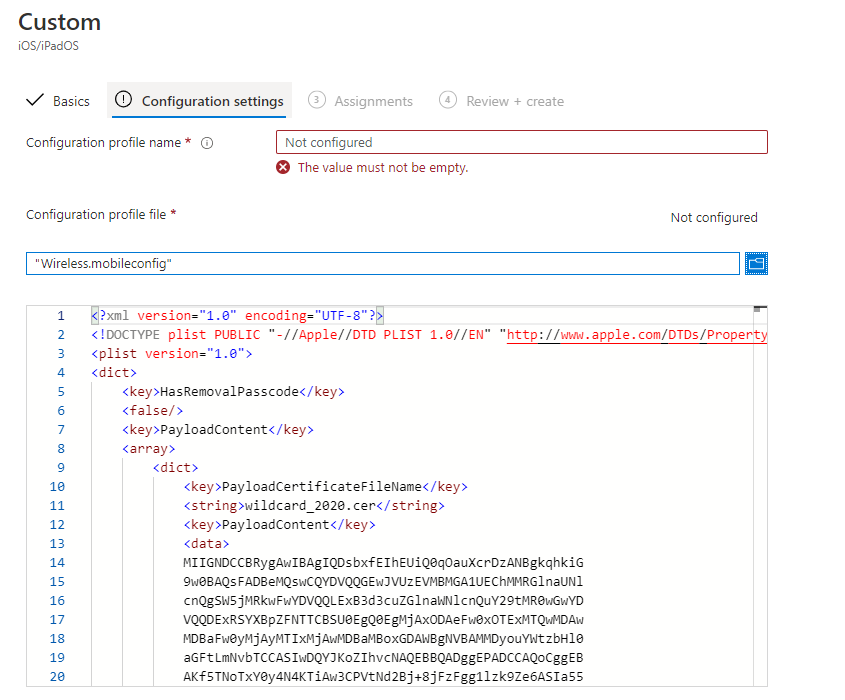MEM: iOS Wireless Profile with embedded credentials