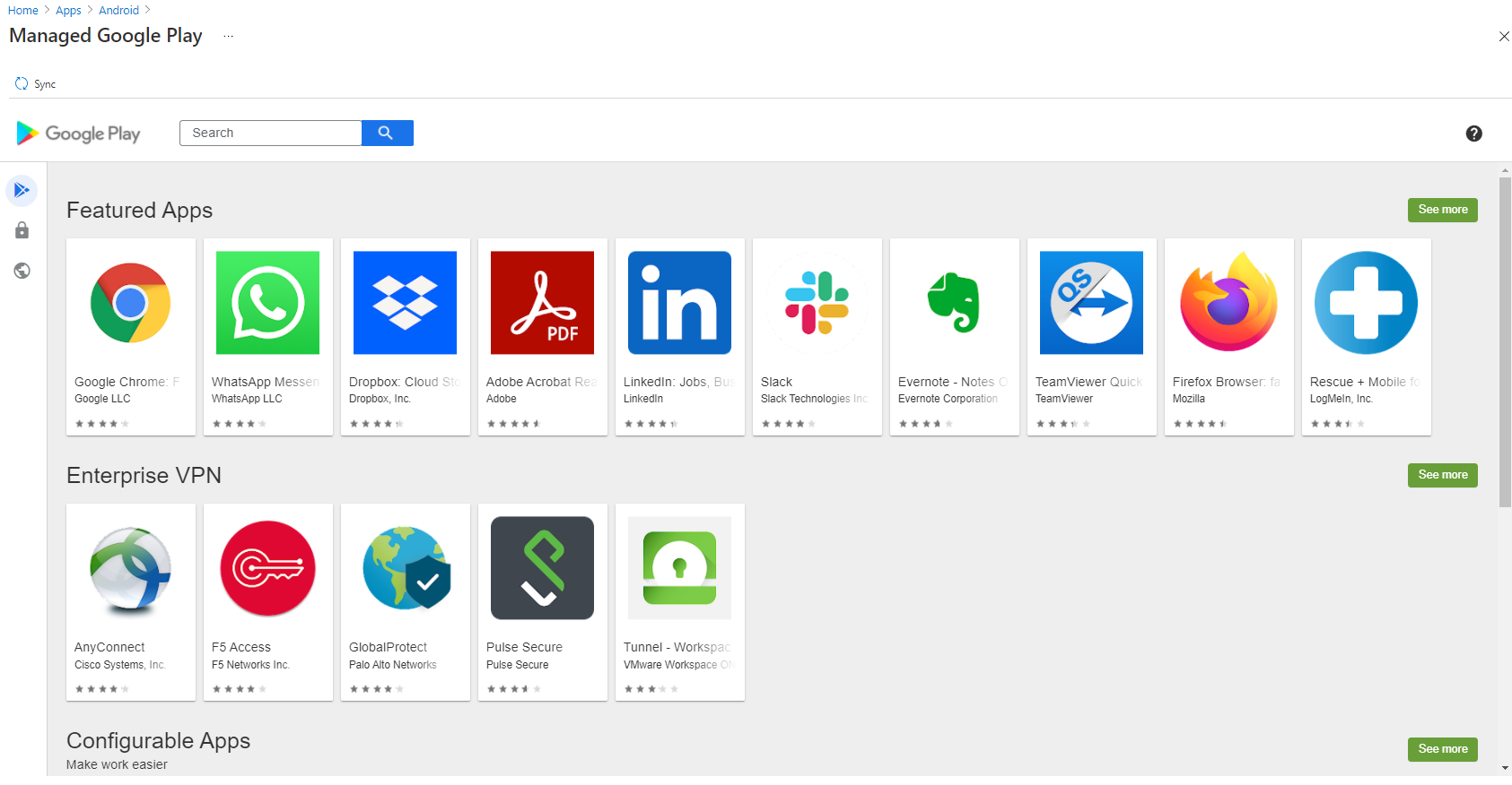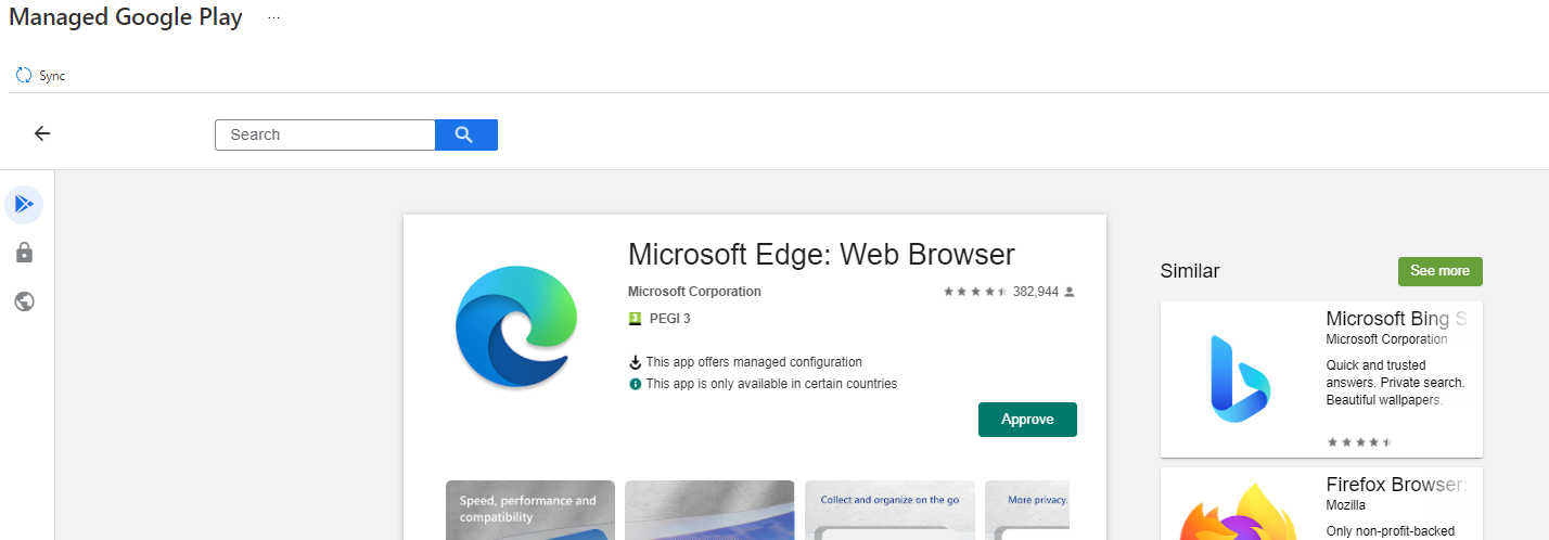 This is where it gets a bit clunky in my opinion, although I'm not sure if there's anything Microsoft could have done to make this any better. Search through the Google Play store which has appeared and find the app you want to deploy. Click on Approve.