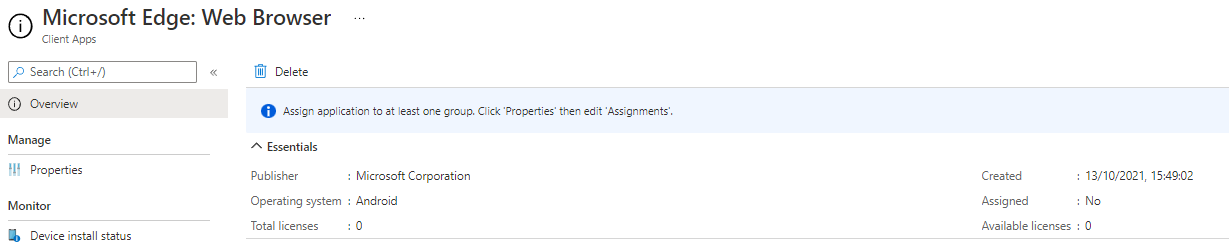 You will now be taken to the list of Android apps which are available to MEM. If your app hasn't appeared yet, wait a while and refresh the list. If it still doesn't appear, try syncing again. Once the app has appeared, you can click on it and assign it to devices.