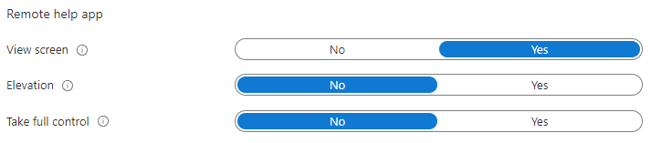 Remote Help needs to be installed on all devices where your technical staff will be helping from, and on all end user devices where you want users to receive support. It can be downloaded from aka.ms/downloadremotehelp and deployed as a Win32 app in Intune. Unfortunately there is not a pre-packaged intunewin file for Remote Help and you have to make your own - see my previous post for instructions on creating a Win32 app. You will need the following settings when adding the app to Intune: