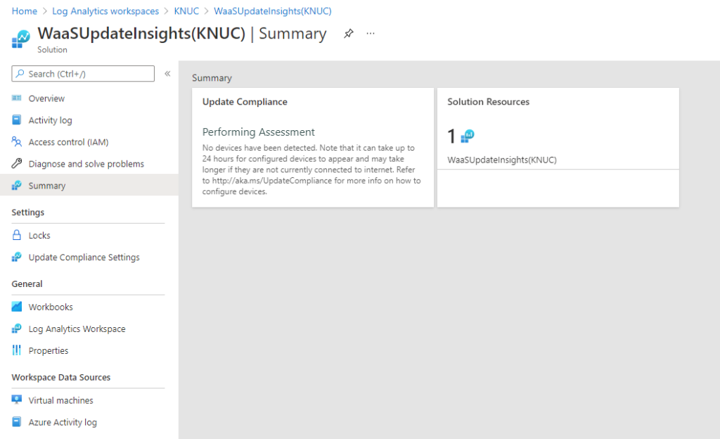 Creating the Log Analytics workspace and WaaSUpdateInsights Solution