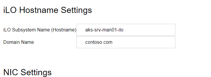 So first step, once you've got into iLO (the IP address is shown when the server boots, the default username/password are on a sticker or tag on the server chassis - the G8 and G9 kit has a pull-out tag at the front), is to set the host name of the system - go to Network -> iLO Dedicated Network Port, then onto the General tab to set the host and domain name.