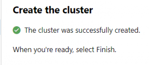 Now click on Create cluster. It will take a while setting the cluster up and with any luck you'll see this magnificent screen appear: