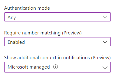 Make sure this method is enabled, scope to All Users and then click on the menu button and select Configure. - Select the Authentication Mode (Any, Passwordless or Push) - again recommending the default here, which is Any, and then configure both number matching and additional context. The default setting for these is Microsoft managed, which basically means it should be enabled when the feature has been fully released. To turn them on early, select Enabled.