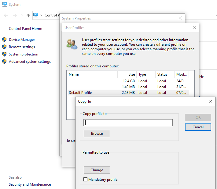 Configure Default User profile